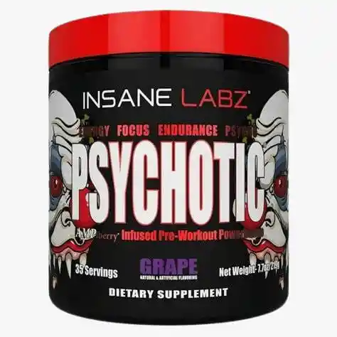 PSYCHOTIC INSANE LABZ es uno de los pre-entrenos en polvo más poderosos jamás creado. Con la adición del ingrediente registrado Ampiberry el cual prolonga la vida de el estimulante en los ingredientes por hasta 3 horas. Psychotic esta formulado con los ingredientes perfectos para llevar tu rendimiento al siguiente nivel en tus entrenamientos.Contiene ingredientes de alto octanaje que han demostrado brindar tremendos beneficios como Extremar tu energía y fuerza, ademas de prolongar tu rendimiento.