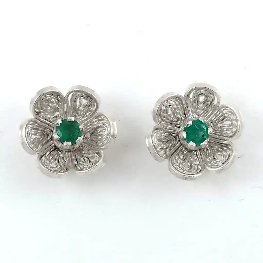 Aretes de plata sólida con esmeralda natural Colombiana garantizada, peso total de la o las esmeraldas 0.19kt