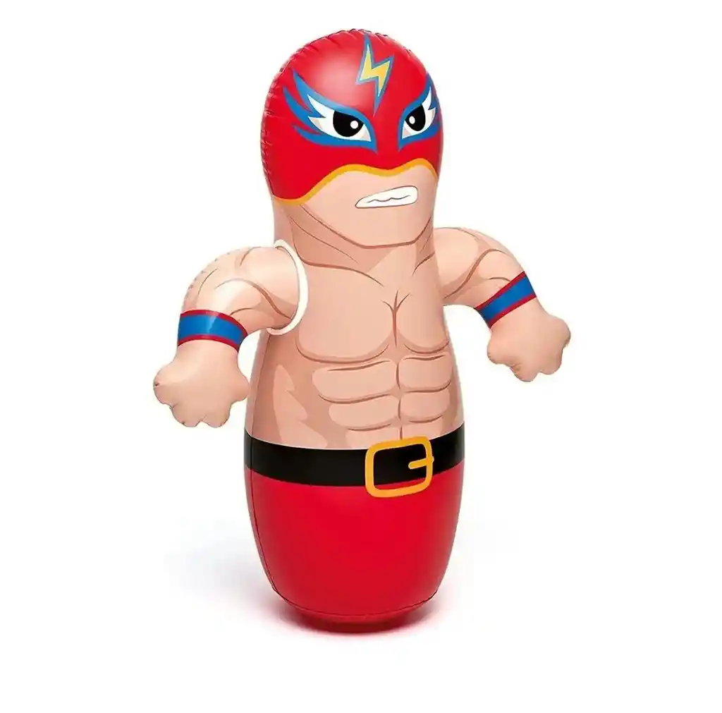 El muñeco inflable “porfiado” tipo luchador/boxeador es un juguete de golpeo pensado para que los niños descarguen energía de forma divertida, ya que se balancea y vuelve a ponerse de pie gracias a su base lastrada con agua que le da estabilidad. Este modelo se fabrica en vinilo/PVC resistente, se infla fácilmente y está diseñado para uso en interiores (piso liso) o exteriores, ayudando a estimular la actividad física, la coordinación y el juego activo. Ficha Técnica: Dimensiones: 86 cm x 25 cm Material: Vinilo PVC Edad recomendada: + 3 años Referencia: 2343-22 ** _Para defectos de fábrica o retractos: \**_Por favor revise el producto apenas lo reciba y antes de usarlo. No aplican ley de retracto o defectos de fábrica luego de usar el producto. Se manejan máximo 5 días para reportar defectos de fábrica (por ejemplo, producto funciona mal, piezas faltantes, rotas, etc). Para hacer efectiva la devolución el producto debe devolverse con el empaque original, el cual debe estar en buen estado, incluir todos los documentos y las partes completas y sin daños.