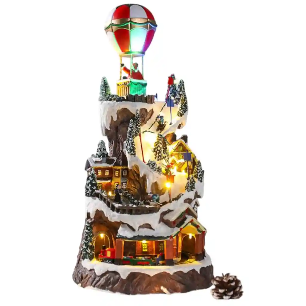 “Pueblo Nevado Christmas Lights Edition” El Pueblo Nevado Christmas Lights Edition es una pieza decorativa de diseño premium pensada para convertir cualquier rincón del hogar en un escenario navideño digno de una postal. Su arquitectura detallada resalta casas con tejados cubiertos de nieve, faroles, caminos pintados y fachadas finamente decoradas, creando una estética cálida y encantadora. Cada color y acabado ha sido aplicado a mano, garantizando un estilo único en cada unidad. Su sistema de iluminación con LED cálido parpadeante otorga un brillo suave y acogedor que resalta cada detalle de la aldea, mientras sus 8 melodías navideñas reproducen los clásicos más queridos de la temporada. Los elementos en movimiento, como el tren que rodea la base y el globo aerostático que gira en la parte superior, aportan dinamismo y una experiencia visual completa para toda la familia. Este pueblo incorpora un práctico sistema de alimentación dual para adaptarse a cualquier espacio: funciona con pilas AA o mediante USB, lo que permite ubicarlo en mesas, repisas y vitrinas sin depender de enchufes cercanos. Fabricado en resina resistente, está diseñado para perdurar y convertirse en una tradición navideña dentro del hogar o negocio. Ideal para hogares, oficinas, recepciones, tiendas o como punto focal en decoraciones temáticas, este Pueblo Nevado llenará tus fiestas de luz, música y ambiente invernal. Especificaciones Técnicas Altura: 25 cm Ancho: 20 cm Profundidad: 15 cm Material: Resina premium con pintura a mano Iluminación: LED cálido Música: 8 melodías navideñas Movimientos: Tren decorativo + globo aerostático giratorio Modos disponibles: Luces + música / Solo luces Alimentación: 3 pilas AA o USB Peso: 1.1 kg Uso: Exclusivo para interiores Garantía 30 días por defectos de fábrica: fallas de luz, música, ensamblaje o mecanismos de movimiento. Retracto de Compra 5 días hábiles disponibles para retracto, con producto en estado nuevo.