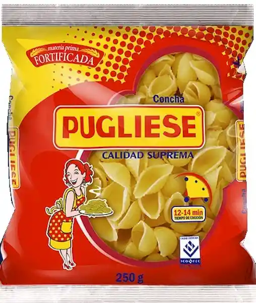 Pugliese pasta concha presentación en bolsa con 250 g. Packing: Bolsa