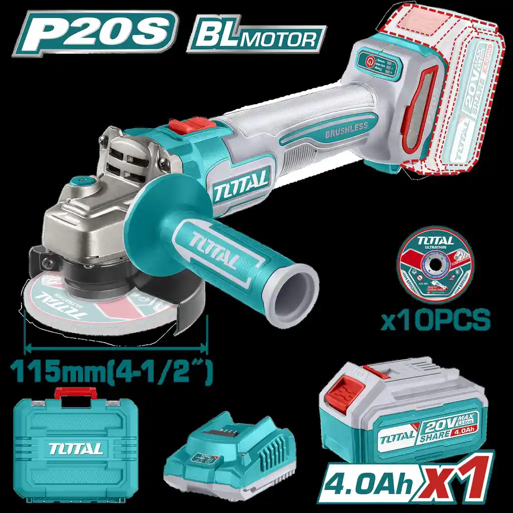 PULIDORA INALAMBRICA 20V INCLUYE 10 DISCOS PARA CORTE DE METAL BATERIA Y CARGADOR INDUSTRIAL TOTAL (UTAGLI211541)