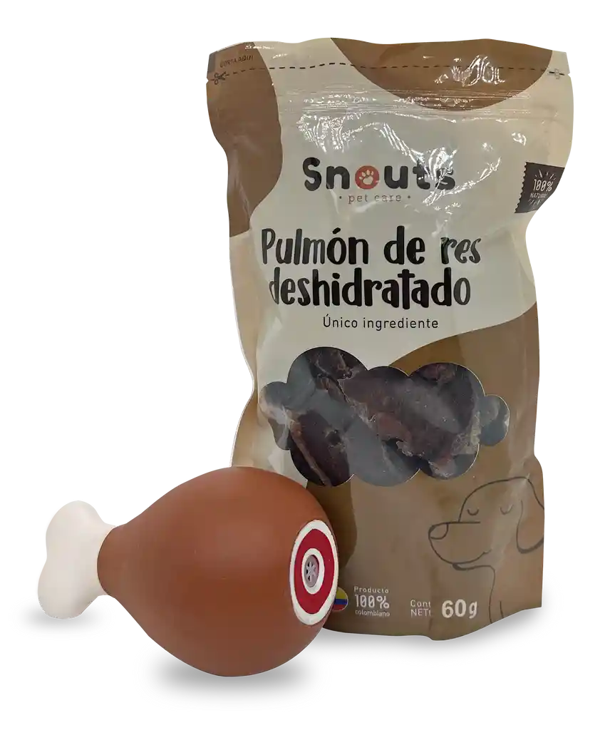 Pata de pollo con aroma a pollo, ayuda al estrés y la ansiedad de tu mascota y a fortalacer el vinculo con el + pulmon de res deshidratado,excelente snack para perros y gatos. Hecho 100% con pulmon de res.