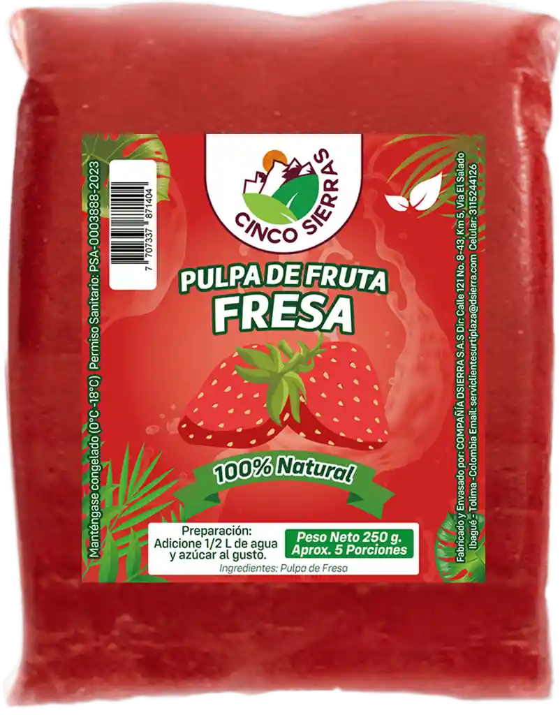 Pulpa De Fresa Por 250 G Cinco Sierras