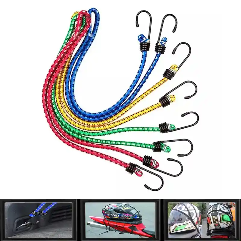 Este pulpo elástico es un accesorio indispensable para quienes necesitan asegurar cargas de forma práctica y segura sobre una motocicleta. Fabricado con cordón elástico de alta resistencia, permite sujetar mochilas, cajas, bolsas u otros objetos al asiento o parrilla sin riesgo de deslizamiento durante el trayecto. Está equipado con ganchos metálicos recubiertos que brindan mayor firmeza y evitan rayones en la estructura de la moto. Su diseño flexible y duradero se adapta a distintas formas y tamaños de carga, ofreciendo una sujeción confiable incluso en trayectos largos o con vibración constante. Características: Material elástico de alta calidad Ganchos metálicos con recubrimiento protector Fácil de colocar y retirar Ideal para uso diario, entregas o viajes Medidas: sin estirar 136 cms Colores disponibles: color a disponibilidad en la tienda