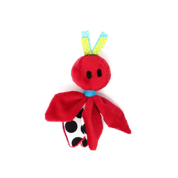 El pulpo sensorial hace parte de la colección de animales sensoriales de Tool-be ¿Cómo ayuda a tu bebé? • Tiene un diámetro ideal, que fue diseñado y aplicado acorde a la capacidad de apertura y agarre de los bebés en sus primeros meses, en un proceso en el que ellos mantienen cada vez más sus manos abiertas y comienzan a desarrollar su agarre voluntario y su coordinación ojo-mano. • Servirá de apoyo para hacer seguimiento visual de objetos de diferentes colores. Los colores fuertes y saturados, facilitan la percepción visual en los primeros meses. • Adicionalmente, su composición interna y externa, brinda la posibilidad de sentir texturas diferentes, que ayudarán a tu bebé en el descubrimiento de nuevas sensaciones táctiles. • Su forma en forma de “bolas”, lo hace ideal para jugar a lanzar y trabajar la coordinación de sus manos y brazos en edades más avanzadas. • Permite realizar juegos de personificación, utilizando sus onomatopeyas y diferentes voces, que ayudarán a tu bebé en el desarrollo del habla. Especificaciones Material: Tejido Textura: Suave Color: Rojo, blanco y negro Tentáculos Sonoros Fácil de lavar y secar