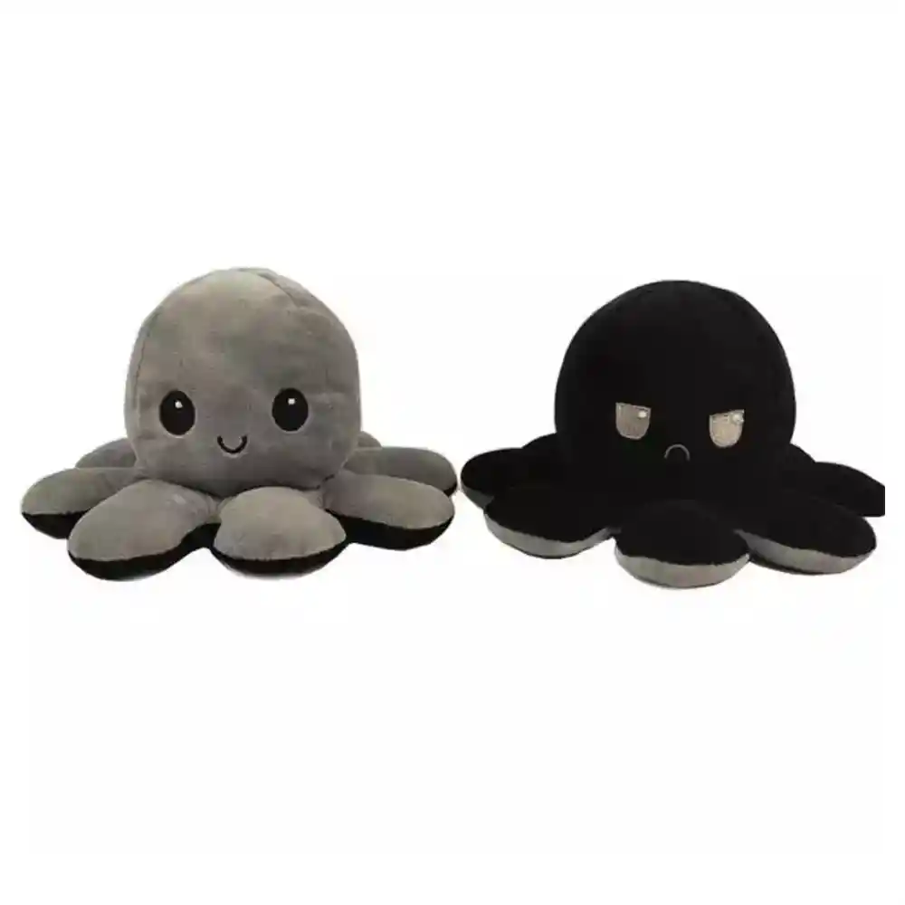 Peluches de pulpos reversibles, adorables y versátiles. Estos juguetes suaves tienen un diseño único que permite voltearlos para revelar otro color o expresión facial. Ideal para quienes buscan diversión y ternura en un solo peluche. Disponibles 3 unidades: 1 negro/gris 1 azul/rosa 1 gris/gris oscuro