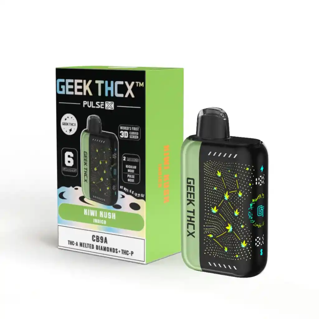 Una mezcla única de frescura tropical y potencia extrema 🌿🥝🔥. El Geek THCX Pulse X – Kiwi Kush combina 6 gramos de destilado premium THCX con un perfil de sabor exótico y herbal, ideal para quienes buscan un balance entre relajación y energía. Características 🌿 Contenido: 6g de destilado THCX 🥝 Sabor: Kiwi Kush – tropical y herbal ⚡ Flujo de vapor potente y constante 🔋 Batería recargable con puerto USB-C 💨 Dispositivo desechable y práctico Beneficios 😎 Relajación profunda sin perder claridad mental 🚀 Efecto duradero y de alta intensidad ✨ Sabor fresco y agradable en cada calada 📦 Comodidad y discreción en formato listo para usar