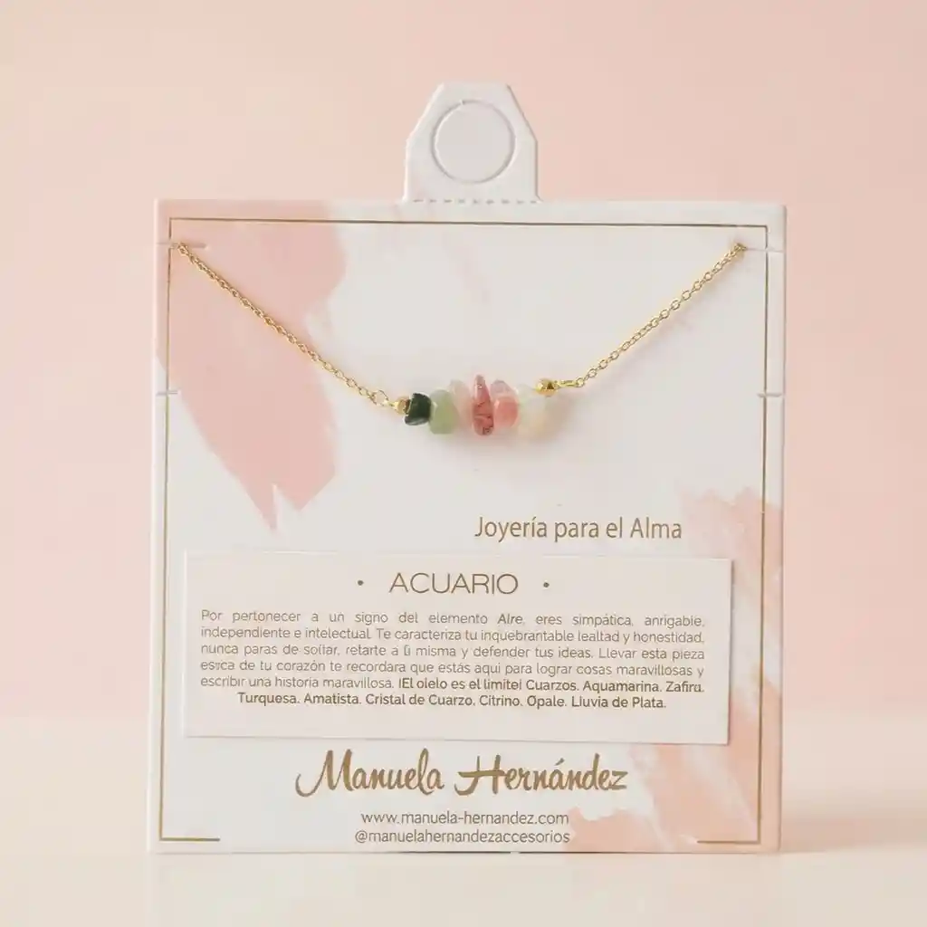 La cadena y los apliques dorados cuentan con Baño de Oro 18k. Elaborado con Cuarzos Naturales.