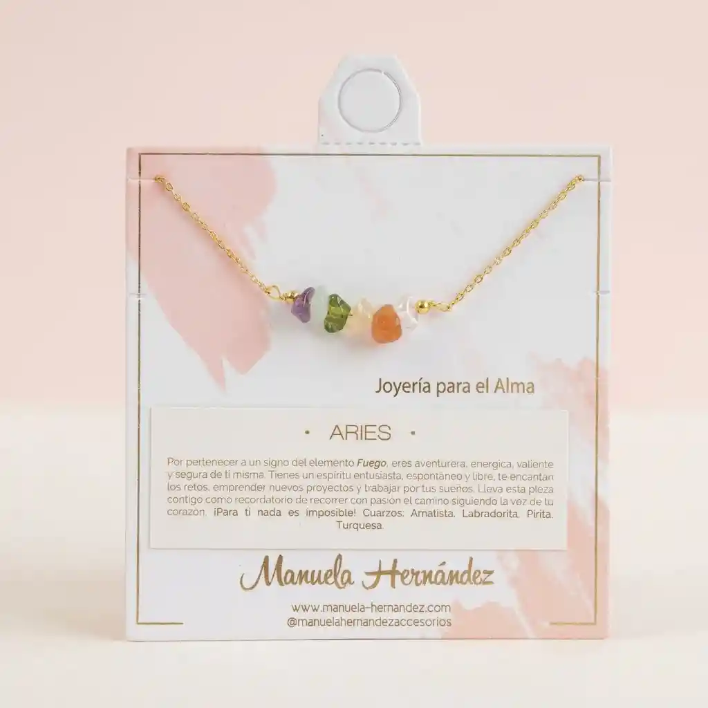La cadena y los apliques dorados cuentan con Baño de Oro 18k. Elaborado con Cuarzos Naturales.