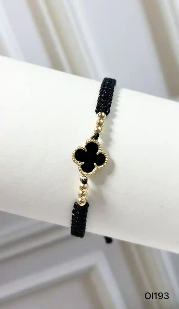 Pulsera tejida en hilo terlenca con 6 balines de 3mm dije de trebol de 11 mm en oro laminado 18K. La Pulsera es ajustable hasta 24 cm de diámetro. Va empacada en Cajita para Obsequio. QUE ES EL ORO LAMINADO? Son piezas que se obtienen fundiendo TRES láminas gruesas de ORO de 18K, sobre una base especial de 2 metales: Tombac y Paladio; esta última asegura la adherencia, que junto a las láminas de ORO de 18K, forman un material antialérgico (libre de níquel), de alta resistencia garantizando la invariabilidad de su color en el tiempo y con el mismo tono, textura y brillo del ORO 18K. Todas nuestras joyas en oro laminado 18k tienen 1 años de garantía. -CUIDADOS ESPECIALES - Si la usas para hacer ejercicio, en la piscina o en el mar, simplemente debes lavarla con agua y jabón, y frotar suavemente con un cepillo de dientes de cerdas suaves; para que todos estos agentes corrosivos no afecten su brillo y la semi joya pueda perdurar en el tiempo. NO aplicar ácidos y evitar rayones o raspaduras. ATENCIÓN: LA JOYA NO ES EMPEÑABLE, NO ES ORO MACIZO- ASÍ QUE NO SE VENDE POR PESO NI GRAMOS. Somos giftsjoyas