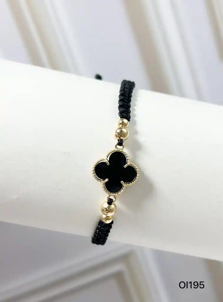 Pulsera tejida en hilo terlenca con2 balines de 4mm Y 5 DE 5MM dije de trebol de 15 mm en oro laminado 18K. La Pulsera es ajustable hasta 24 cm de diámetro. Se empaca en una linda cajita para obsequio. Para ver todo el catálogo de joyas y accesorios disponibles, baja donde dice más publicaciones del vendedor y has clic en VER TODAS LAS PUBLICACIONES. ¿QUE ES EL ORO LAMINADO? Son piezas que se obtienen fundiendo TRES láminas gruesas de ORO de 18K, sobre una base especial de 2 metales: Tombac y Paladio; esta última asegura la adherencia, que junto a las láminas de ORO de 18K, forman un material antialérgico (libre de níquel), de alta resistencia garantizando la invariabilidad de su color en el tiempo y con el mismo tono, textura y brillo del ORO 18K. Todas nuestras joyas en oro laminado 18k tienen 2 años de garantía. -CUIDADOS ESPECIALES - Si la usas para hacer ejercicio, en la piscina o en el mar, simplemente debes lavar la joya con agua y jabón líquido y frotar suavemente con un cepillo de dientes de cerdas suaves; para que todos estos agentes corrosivos no afecten su brillo y la joya pueda perdurar en el tiempo. NO aplicar ácidos y evitar golpes, rayones o raspaduras; que generan desvanecimientos y pérdida de piedras o roturas que no incluyen la garantía. Somos giftsjoyas