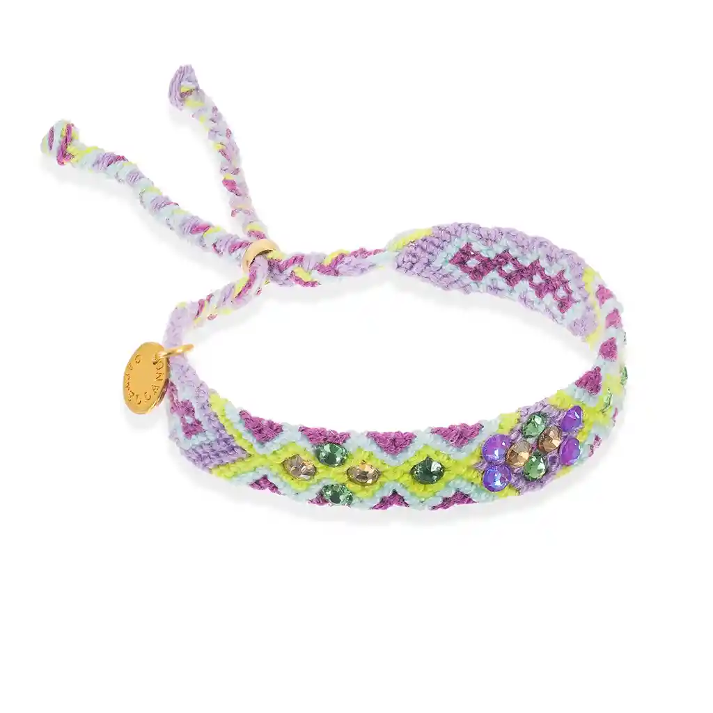 Pulsera 100% tejida a mano por las artesanas Wayuu, con cristales de Swarovski y cierre ajustable color oro.