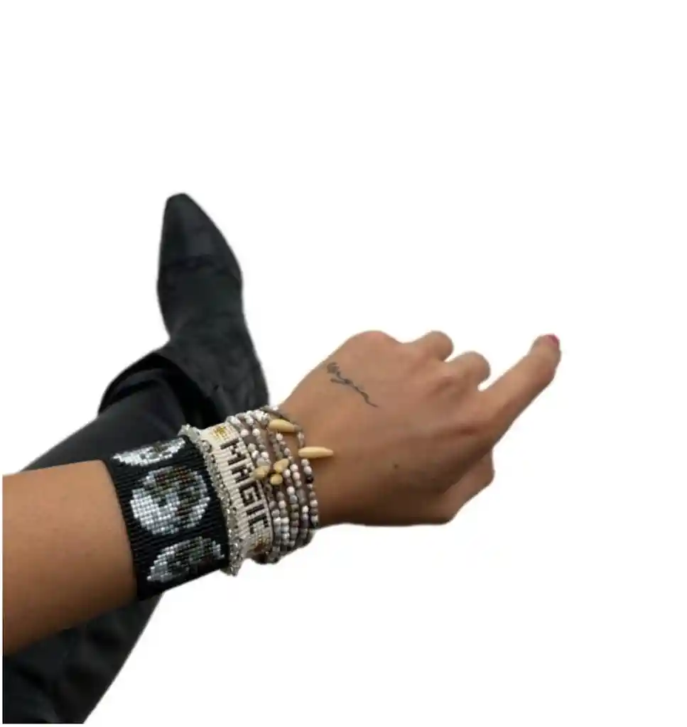 Pulsera artesanal hechas en cristales Miyuki por mujeres de comunidad indígena en el Putumayo , para LaCrowRituals. Este accesorio del ciclo lunar te recuerda que nada es Permanente , excepto el cambio y que al igual que la luna , atravesamos fases de vacío para sentirnos nuevamente llenas.