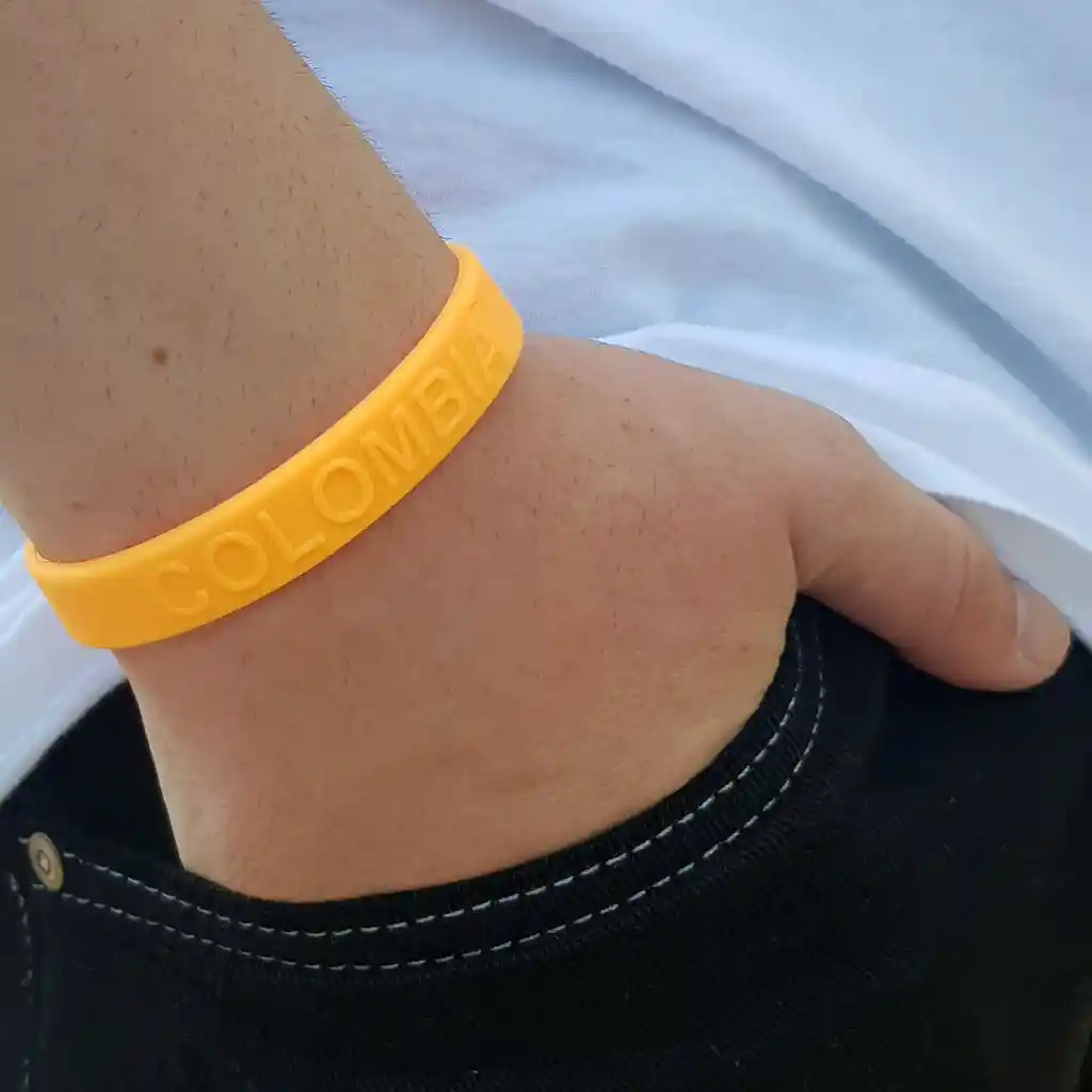 Pulsera Colombia. Texto alto relieve. 100% Silicona