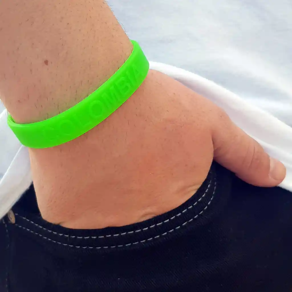 Pulsera Colombia. Texto alto relieve. 100% Silicona