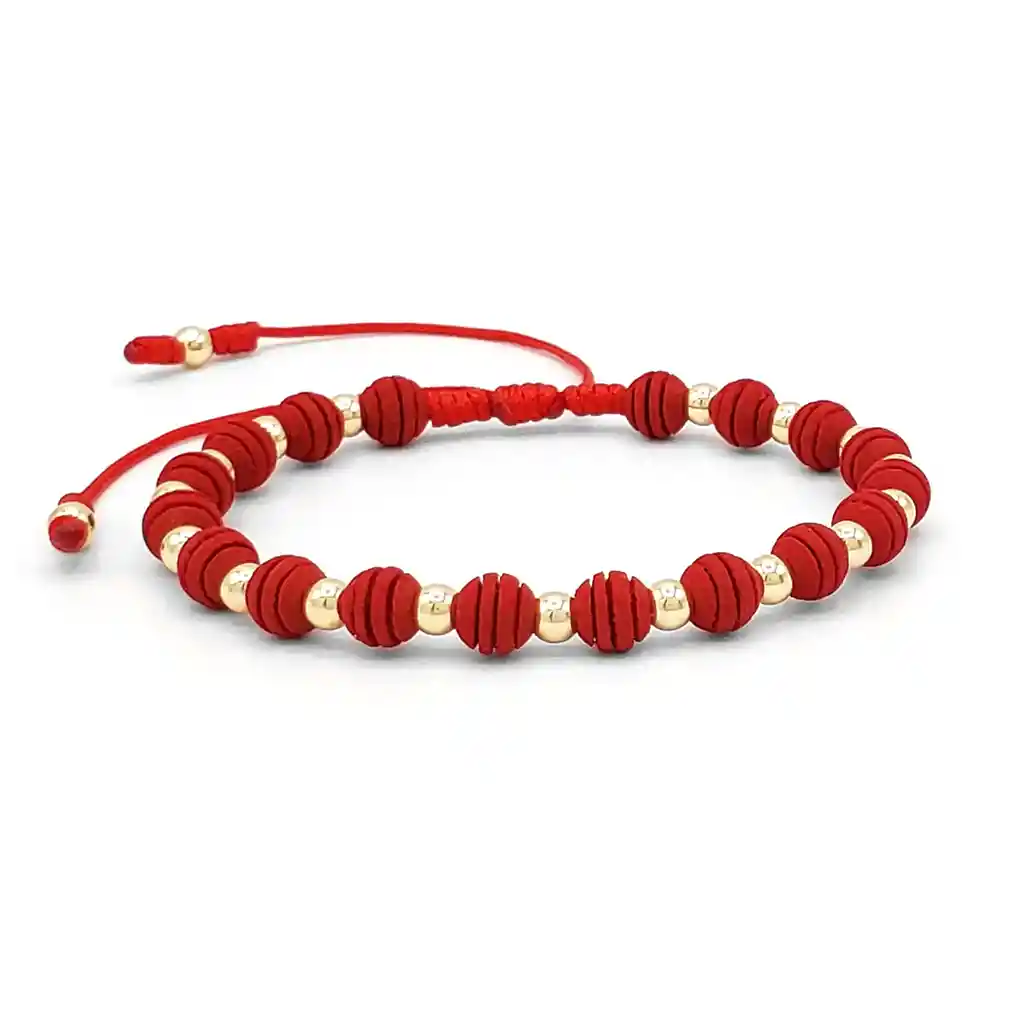 Pulsera elaborada con Cordón Italiano, Neopreno Negro, Rojo o Blanco de 6mm y Balines Oro Laminado 18k de 4mm. Va empacada en Cajita para Obsequio. Disponible en colores: Negro, Rojo o Blanco. Elige tu favorito. El Oro Laminado es una composición de Titanio con 3 Capas de Oro 18K al horno con Tecnología Italiana. Tiene el mismo tono y Brillo del Oro. Es resistente al agua, sudor y lociones. No se pela, no se negrea, no se decolora. El tono dorado tiene una durabilidad prolongada de aproximadamente 10 años. El producto está garantizado por 1 Año. TALLA ESTANDAR