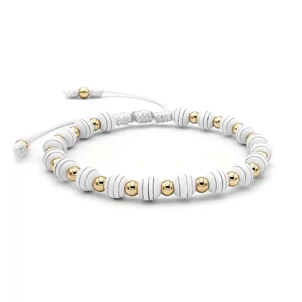 Pulsera elaborada con Cordón Italiano, Neopreno Negro, Rojo o Blanco de 6mm y Balines Oro Laminado 18k de 4mm. Va empacada en Cajita para Obsequio. Disponible en colores: Negro, Rojo o Blanco. Elige tu favorito. El Oro Laminado es una composición de Titanio con 3 Capas de Oro 18K al horno con Tecnología Italiana. Tiene el mismo tono y Brillo del Oro. Es resistente al agua, sudor y lociones. No se pela, no se negrea, no se decolora. El tono dorado tiene una durabilidad prolongada de aproximadamente 10 años. El producto está garantizado por 1 Año. TALLA ESTANDAR