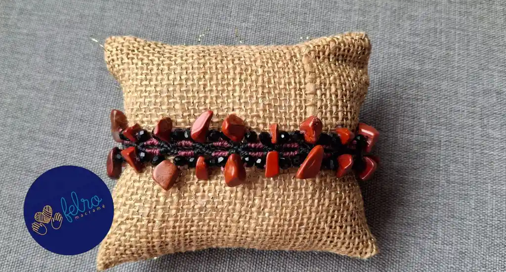 ✨ Sombras de Vino Jaspe ✨ Una pulsera tejida a mano en micro macramé que combina la fuerza del negro, la intensidad del vino tinto y la energía protectora del jaspe natural. Diseñada para quienes caminan con elegancia en lo profundo, y encuentran belleza en la oscuridad. 🌑 El negro representa poder y misterio. 🍷 El vino tinto, pasión y sofisticación. 🪨 El jaspe, equilibrio, protección y conexión con la tierra. Características: Pulsera con piedras Jaspe, hecho a mano 🙌🏻, técnica 🪢 micro macramé, material hilo encerado resistente, ancho 1,5 cm, largo 16 cm, (zona anudada), cierre ajustable deslizante. ⚜️ Cuidado de las joyas: Para preservar el brillo y la vida útil de sus joyas, es aconsejable evitar el contacto con agua y productos químicos y minimizar la fricción. Para el mantenimiento diario, utilice un paño suave para limpiarlos suavemente. Cuando no los uses, es mejor guardarlos en una bolsa o recipiente hermético. Es importante tener en cuenta que los colores de la pulsera pueden variar ligeramente debido a las diferentes configuraciones de la cámara y la iluminación. Apreciamos tu comprensión y te aseguramos que recibirás una pieza igualmente hermosa y de alta calidad. Si tienes alguna pregunta, no dudes en contactarnos. ¡Gracias por apoyar el trabajo artesanal!