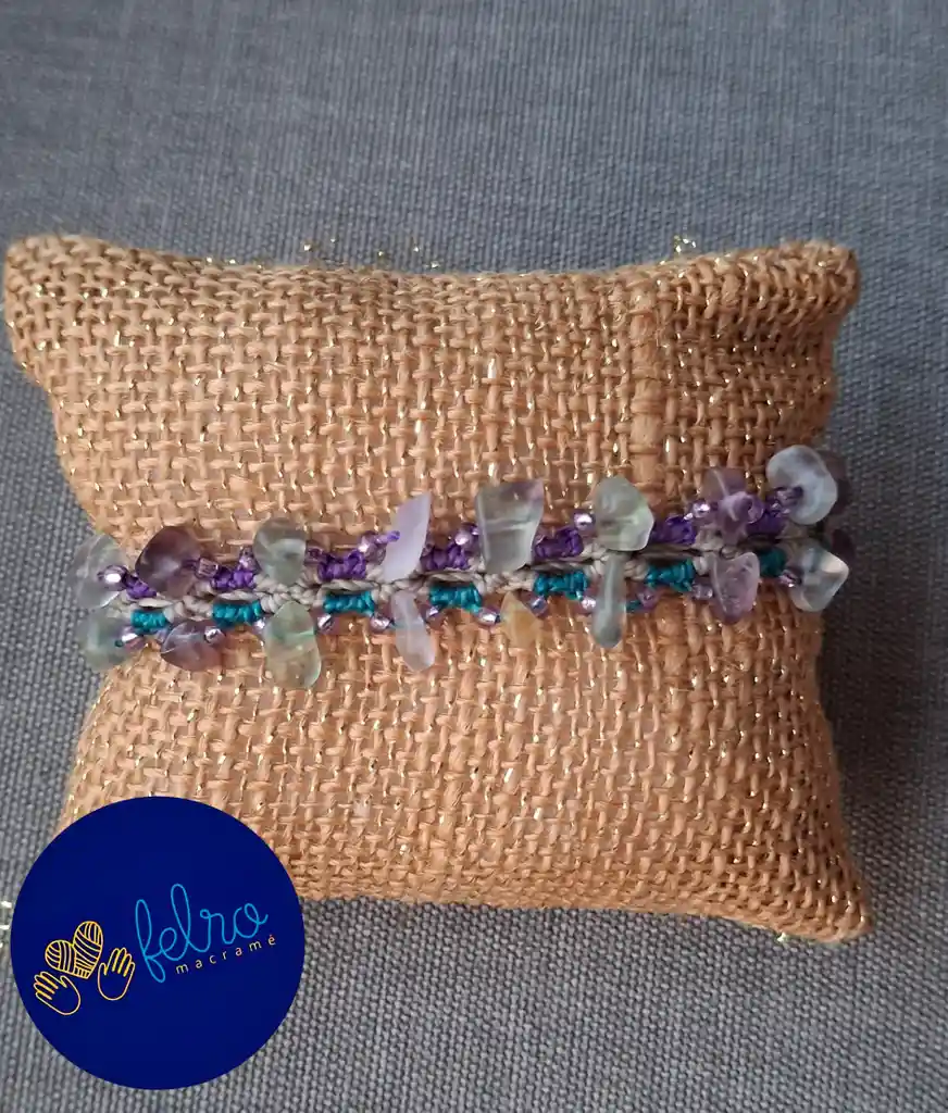 ✨ Pulsera de Fluorita en Micro Macramé – Claridad, Equilibrio y Energía Positiva ✨ Conecta con la armonía de tu mente y tu energía interior con esta pulsera tejida a mano, elaborada con la delicada técnica de micro macramé y piedras naturales de fluorita picada. Una joya artesanal que combina belleza, intención y significado espiritual. 💎 Significado espiritual de la fluorita La fluorita es conocida como la piedra de la claridad mental y el orden interior. Ayuda a organizar pensamientos y a tomar decisiones con mayor enfoque. Aporta equilibrio emocional y estabilidad energética. Protege contra energías negativas y el estrés mental. Favorece la concentración, el aprendizaje y la intuición. Es ideal para personas creativas, estudiantes o quienes buscan calma, enfoque y armonía en su día a día ✨ 🔸 Características Pulsera tejida a mano 🪢 con técnica de micro macramé Material: hilo encerado resistente Piedra natural: Fluorita picada Ancho: 1,5 cm Largo: 16 cm (zona anudada) Cierre ajustable deslizante para mayor comodidad ⚜️ Cuidado de tus joyas Para conservar su brillo y durabilidad: Evita el contacto con agua y productos químicos. Minimiza la fricción con otras superficies. Límpiala suavemente con un paño seco. Guárdala en una bolsa o recipiente hermético cuando no la uses. ✨ Cada pieza es única: los tonos pueden variar ligeramente debido a la iluminación y a las características naturales de las piedras. Apreciamos tu comprensión y te aseguramos que recibirás una pieza igualmente hermosa y de alta calidad. 💫 Lleva contigo una joya artesanal que inspira claridad, equilibrio y energía positiva. Perfecta para regalar o consentirte 💝 Si tienes alguna pregunta, no dudes en contactarnos. ¡Gracias por apoyar el trabajo artesanal hecho con amor! 🫶