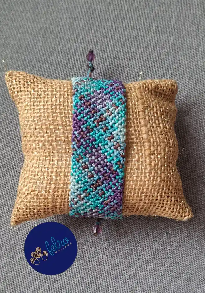 Pulsera Equilibrio Boreal ( “Huesito” o “Escocesa”) Pulsera de macramé ancha de 5 colores, morado, verde menta, verde azul, vino tinto, azul claro. Está tejida artesanalmente con hilo encerado, lo que hace que sean muy duradera y resistente al agua. Es ajustable mediante nudo corredizo, de manera que se adapta a tu muñeca y te la puedes poner y quitar fácilmente. Este brazalete de macramé con patrón escocés de 5 colores está tejido a mano con el nudo de macramé conocido como nudo huesito. Esta pulsera ancha está hecha con hilo encerado brasileño de la mejor calidad lo que hace que sea muy resistente y que te dure toda la vida sin perder sus colores vivos y brillantes. La capa de cera del hilo también lo hace resistente al agua, de manera que aunque se moje no se estropea. Aunque, como es ajustables con un nudo corredizo, también te lo puedes poner y quitar fácilmente cuando quieras. Este brazalete es tanto para hombre como para mujer. Talla ancho 3 cm, largo 16 cm, . La pulsera cuenta con suficiente hilo en los extremos para que puedas abrirla y pasarla a través de tu mano. El nudo corredizo hace que la pulsera se adapte a la mayoría de muñecas. Si tienes dudas sobre si la talla es correcta para ti ponte en contacto. También puedo fabricar una pulsera que se adapte a ti perfectamente o personalizarla con otros colores. Es importante tener en cuenta que los colores de la pulsera Escocesa pueden variar ligeramente debido a las diferentes configuraciones de la cámara y la iluminación. Apreciamos tu comprensión y te aseguramos que recibirás una pieza igualmente hermosa y de alta calidad. Si tienes alguna pregunta, no dudes en contactarnos. ¡Gracias por apoyar el trabajo artesanal!