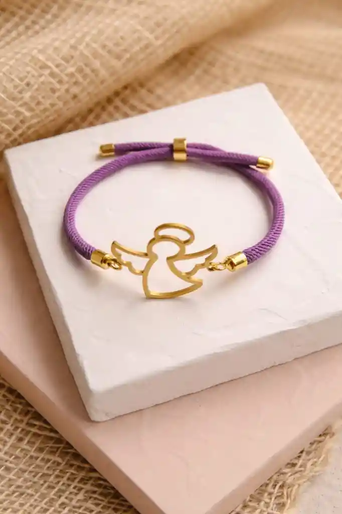 Delicada y significativa, esta pulsera está elaborada en cordón textil de alta calidad en tono violeta, un color asociado con la espiritualidad, la transformación y la calma interior. Su protagonista es un elegante dije de en acero inoxidable, símbolo de protección, guía y energía positiva. El diseño ajustable la hace cómoda y versátil, perfecta para acompañarte en tu día a día o para regalar a alguien especial como un recordatorio de amor y cuidado. ✨ Detalles: Material: Acero inoxidable Cordón textil resistente y ajustable Dije de ángel con significado espiritual Color violeta: conexión, intuición y equilibrio 💫 Energía y significado: Esta pulsera representa la presencia de un ángel guardián que te acompaña, brindando protección, paz y luz en cada paso.