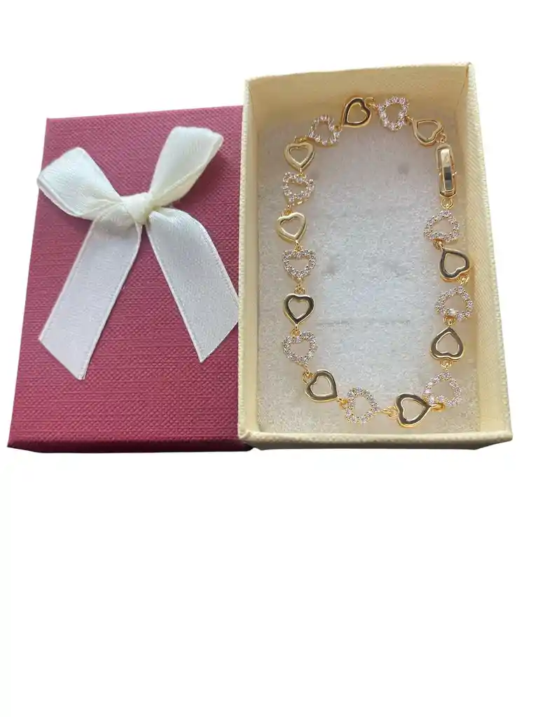 PULSERA DISEÑO DE CORAZONES CON PIEDRAS EN RODIO