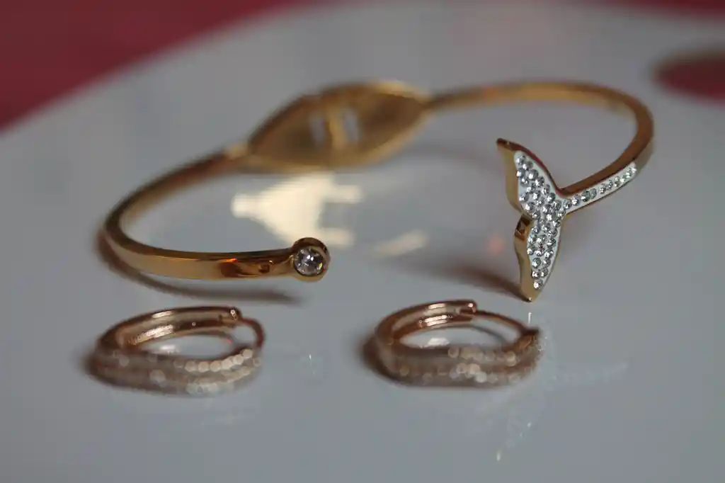 Pulsera para mujer en acero con cierre de bisagras y cola de pez en pedreríaJoyería fina . No aplicar aerosolores o geles sobre la pieza para conservar su brillo. Se envía en caja de joya.No incluye aretes