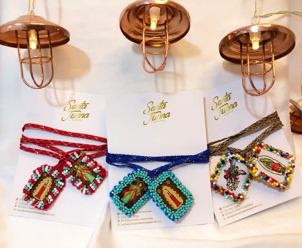 Escapulario en tela tejido con mostacilla cheka