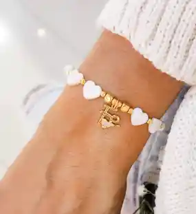 Pulsera fe material rodio, perla natura hecha a mano