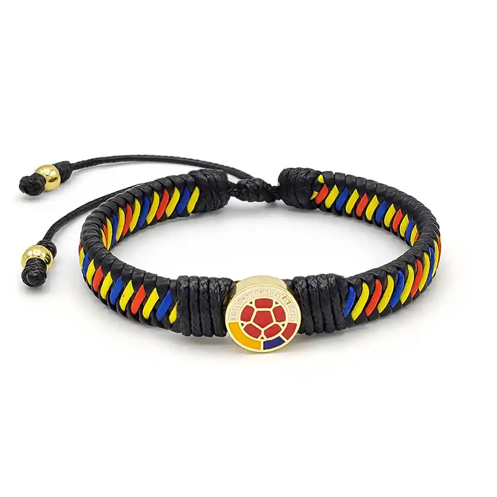 Te presentamos nuestra pulsera tricolor nacional, hecha a mano, con cuero trenzado de 10mm, nudos con cordón víbora, escudo de nuestro equipo nacional de fútbol de Colombia y colgantes de acero inoxidable de 5mm. Elaborada con el amarillo, azul y rojo de nuestra bandera de Colombia. Esta pulsera es un accesorio lleno de pasión por el fútbol y orgullo por nuestro país. Incluye una pulsera y una cajita de regalo, ideal para obsequiar o llevar contigo en cualquier ocasión. Tallas disponibles: ESTANDAR