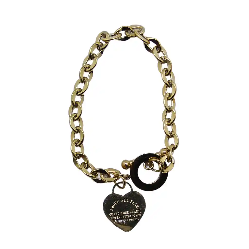Lleva contigo un mensaje de protección y propósito con esta elegante pulsera de cadena. Es una pieza diseñada para destacar, combinando una estética clásica de eslabones con un dije cargado de significado espiritual y motivacional.
