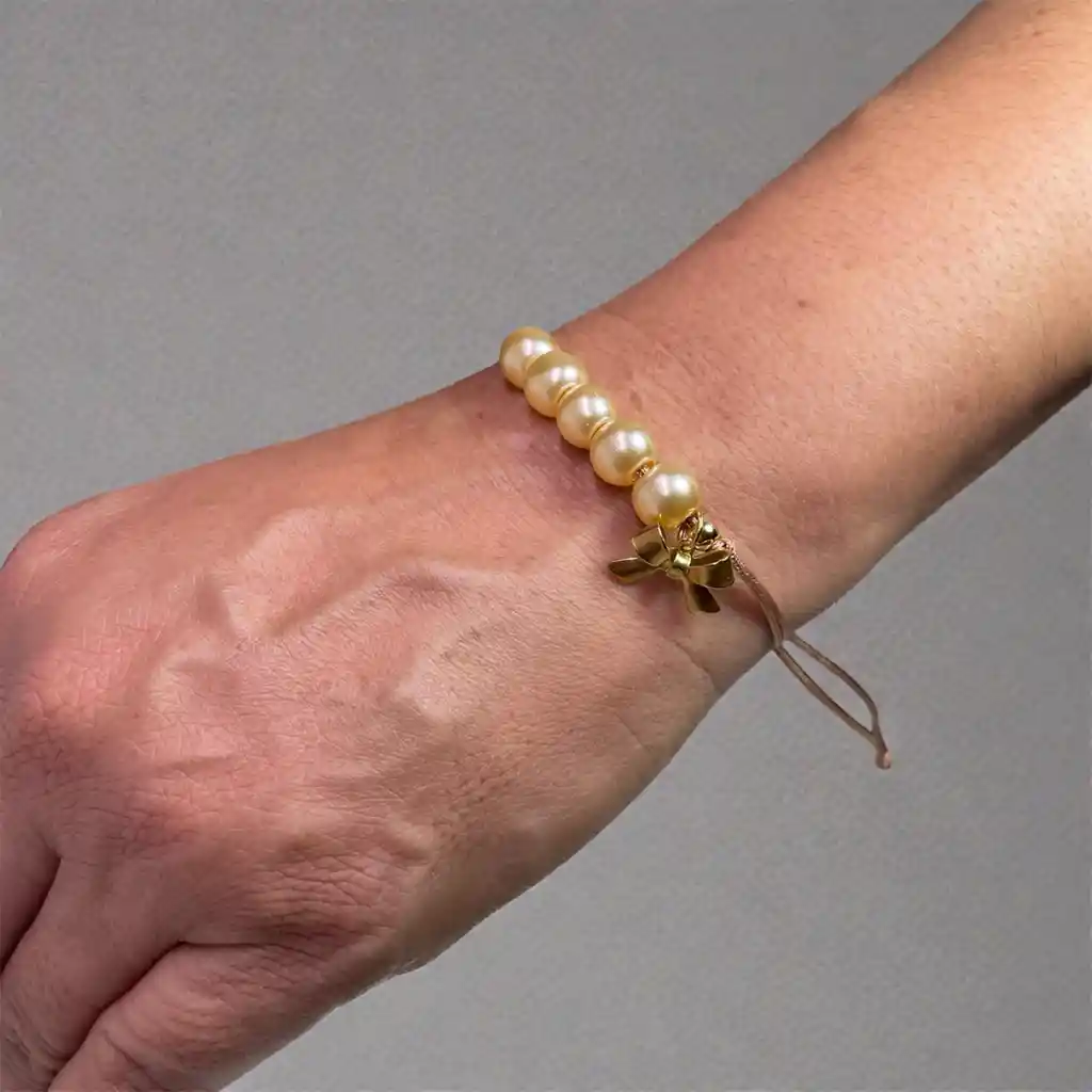 Las perlas originales son gemas orgánicas que se forman dentro de ciertos moluscos, y se asocian con la elegancia, la pureza y la sofisticación. Las perlas acrílicas son esferas sintéticas ligeras, opacas, son mas ligeras, de superficie lisa y colores hermosos sin embargo la apariencia única de este diseño no opaca su significado y elegancia. y su color blanco perlado no solo pureza si no que ademas refleja sabiduria. Composición: -Hilo coreano celular camel 0,8mm -Perlas acrilicas x4 -Dije acero lazo -Balin #4 golfi x 2 -Tamaño: 16 - 18cm