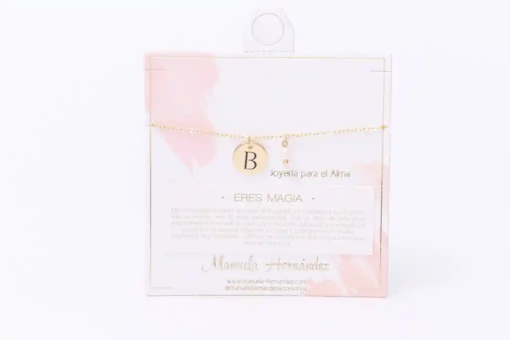-Pulsera dorada con dije de inicial (personalizable por letra) -Diseño minimalista, elegante y atemporal -Perfecta para uso diario y para combinar con otras pulseras -Regalo ideal: nombre propio, inicial de pareja, hijos, familia o mejor amiga -Presentación lista para regalar (empaque Manuela Hernández) -La cadena y el dije cuentan con baño de oro 18k -Longitud de la pulsera: 16 cm. -Cuenta con una extensión de 3,5 cm para que puedas alargarlo hasta 19,5 cm -Elaborada con Perla Natural cultivada en agua dulce.