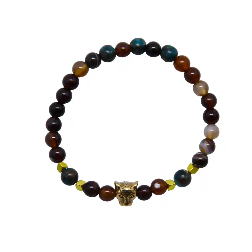 Añade un toque de fuerza y distinción a tu colección con esta pulsera artesanal, diseñada para resaltar por su contraste de texturas y colores cálidos. Es una pieza versátil que combina la esencia de la naturaleza con detalles de lujo.