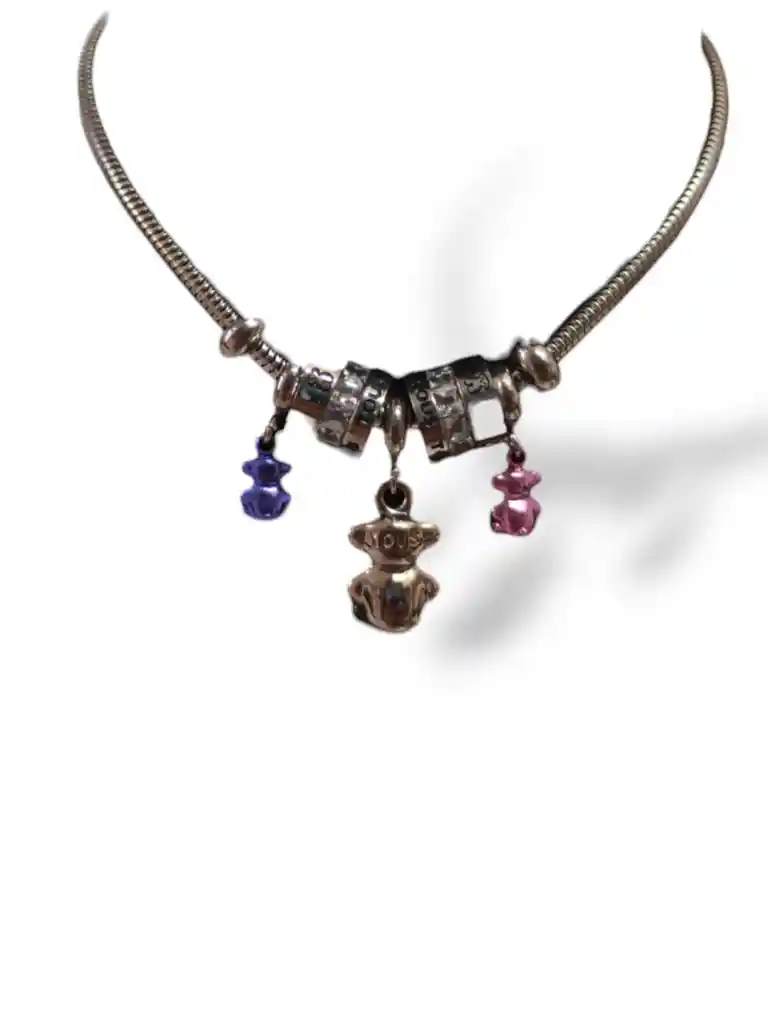 PULSERA MANILLA ACERO INOXIDABLE PLATEADA CON OSOS COLORIDOS GARANTIA ORIGINAL + BOLSA DE LUJO