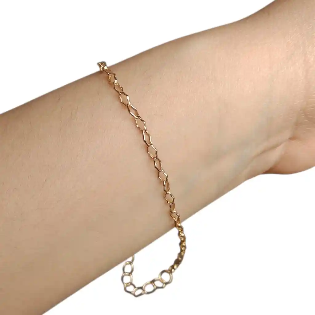 Pulsera Manilla Brazalete Dorada Estilo Cadena Hexagonos Delicados