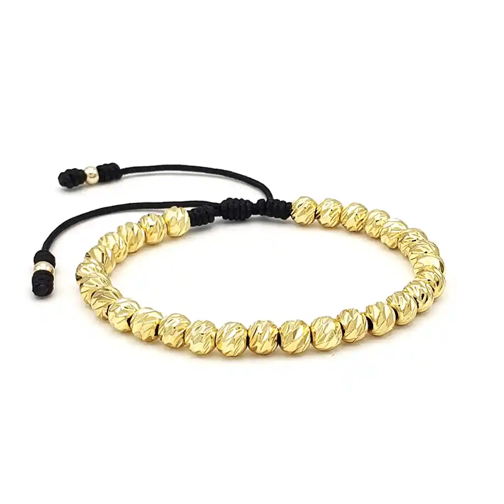 Hermosa Pulsera elaborada con Cordón Italiano y Balines Diamantados de Oro Laminado 18k de 6mm. Va empacada en Cajita para Obsequio. ¿Qué es el Oro Laminado? El Oro Laminado está conformado por una base de titanio recubierta de manera experta con tres capas de Oro de 18k que se someten a un proceso de horneado meticuloso, logrando así una apariencia y brillo indistinguibles del oro auténtico. Posee una extraordinaria resistencia al agua, al sudor y a las lociones, lo que garantiza que su tono dorado no se desvanezca con el paso del tiempo. Garantía: El producto se encuentra respaldado por una garantía de 1 año. (No cubre raspaduras, ralladuras o abolladuras por mala manipulación). Tallas disponibles: Estándar
