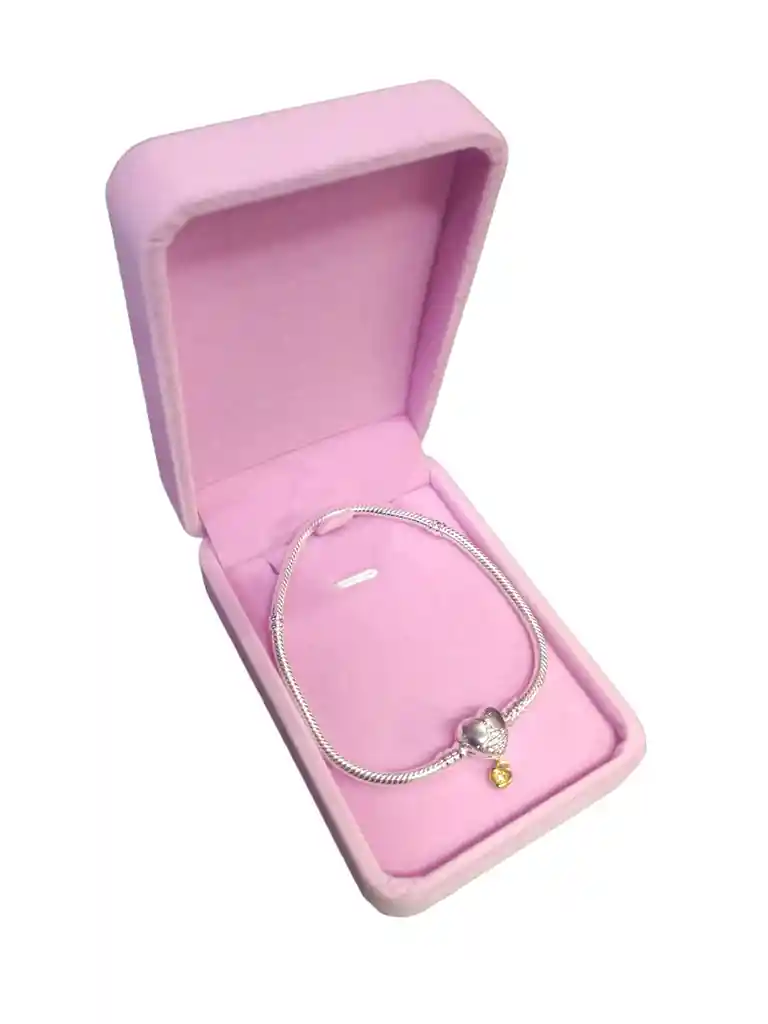 Pulsera Pandor Moments Cierre Corazón Disney Sueños Originales Plata Ley 925 Con Estuche de Lujo Para Joyas Terciopelado Rosado