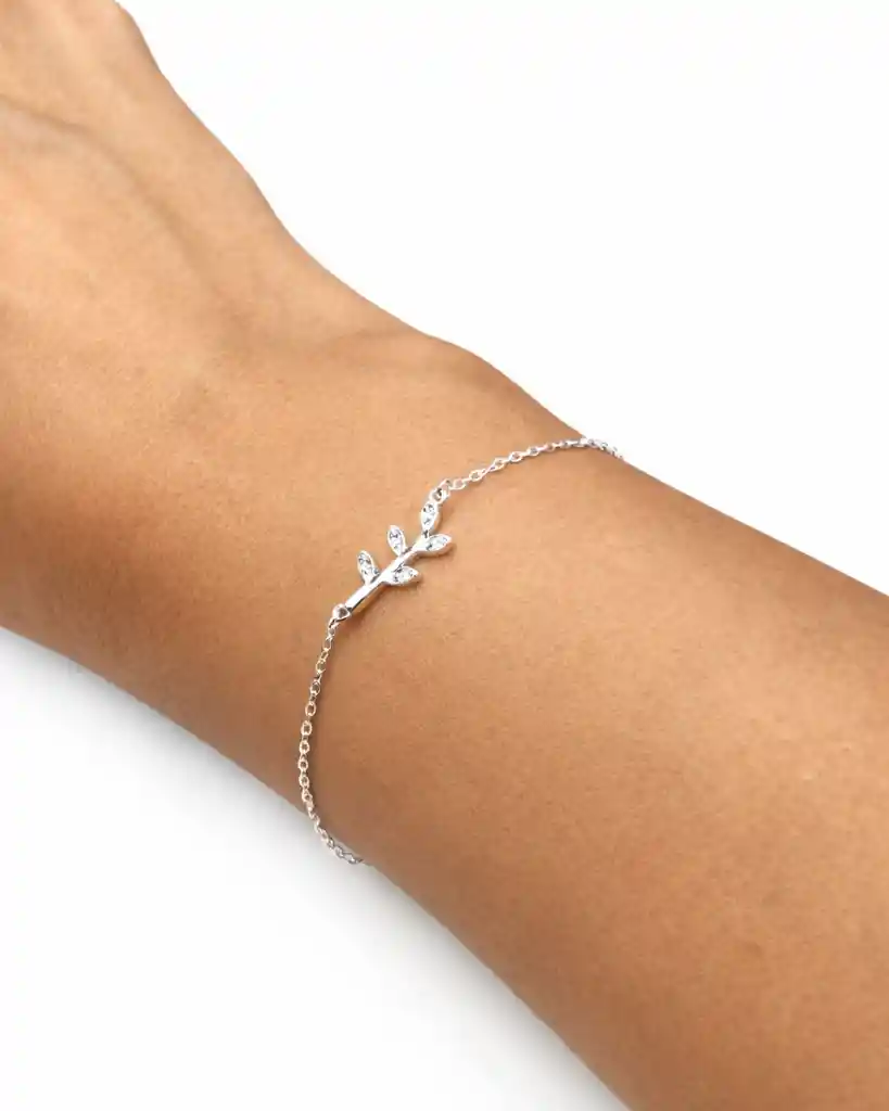 Pulsera en plata 925 con diseño de hoja, perfecta para resaltar tu estilo con un detalle fino, moderno y lleno de significado. Ligera, versátil y fácil de combinar.