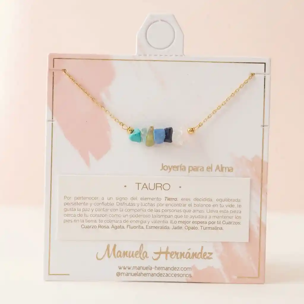 La cadena y los apliques dorados cuentan con Baño de Oro 18k. Elaborado con Cuarzos Naturales.