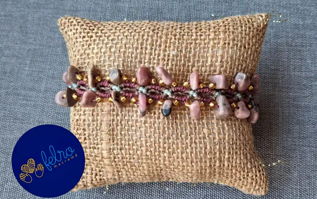 ✨ Pulsera Rodonita ✨ Una joya tejida a mano con la delicadeza del micro macramé, donde se entrelazan la fuerza del vino tinto, la suavidad del verde pastel y la calidez del café claro, acompañadas por la energía sanadora de la piedra natural Rodonita. Diseñada para almas profundas y elegantes, que encuentran belleza en la oscuridad y equilibrio en cada paso. La rodonita es una piedra profundamente ligada al amor, la sanación emocional y el perdón 🌸💗 ✨ Significado de la piedra rodonita La rodonita es conocida como la piedra de la compasión y el equilibrio emocional. Ayuda a sanar heridas del pasado y a fortalecer el amor propio y las relaciones. 🌿 Significados principales Sanación emocional: ayuda a liberar traumas, miedos y resentimientos. Amor y compasión: fomenta el amor incondicional, la empatía y el perdón. Equilibrio emocional: aporta estabilidad en momentos de estrés o confusión. Autoestima: fortalece la seguridad personal y el valor propio. Armonía en las relaciones: favorece relaciones sanas y honestas. 🌸 Características Pulsera tejida a mano 🪢 con técnica de micro macramé Material: hilo encerado resistente Piedra natural: Rodonita Ancho: 1,5 cm | Largo: 16 cm (zona anudada) Cierre ajustable deslizante para mayor comodidad ⚜️ Cuidado de tus joyas Para conservar su brillo y durabilidad: Evita el contacto con agua y productos químicos. Minimiza la fricción con otras superficies. Límpiala suavemente con un paño seco. Guárdala en una bolsa o recipiente hermético cuando no la uses. ✨ Cada pieza es única: los tonos pueden variar ligeramente debido a la iluminación y a las características naturales de las piedras. Apreciamos tu comprensión y te aseguramos que recibirás una pieza igualmente hermosa y de alta calidad. Si tienes alguna pregunta, no dudes en contactarnos. ¡Gracias por apoyar el trabajo artesanal!