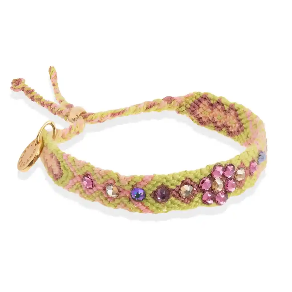 Pulsera 100% tejida a mano por las artesanas Wayuu, con cristales de Swarovski y cierre ajustable color oro.