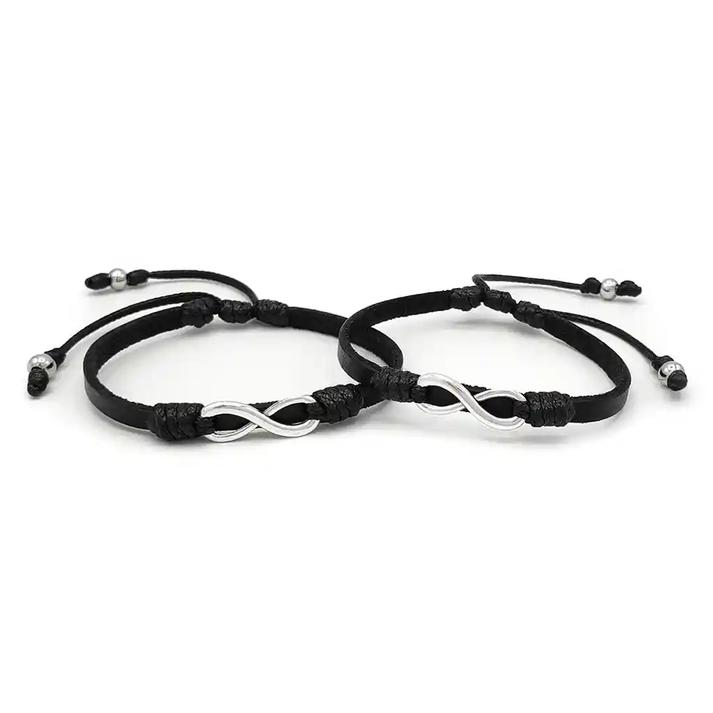 Pulseras elaboradas con Cordón Víbora, Cuero Natural Plano de 5mm y Dijes Infinito de Zamak. Modelos Ajustables. Material de Alta Calidad. El Precio es por las 2 Piezas. Van empacadas en Cajita para Obsequio. ¿Qué simbolizan las pulseras de infinito? Las pulseras de infinito simbolizan una gran variedad de conceptos, dependiendo de la persona que las lleva. Algunos de los significados más comunes son: - Eternidad: El símbolo del infinito es una forma matemática que representa una cantidad infinita, sin principio ni fin. Por lo tanto, las pulseras de infinito se usan a menudo para representar la idea de que algo es interminable, eterno o sin fin. - Amor eterno: En joyería, el símbolo del infinito se utiliza con frecuencia para expresar amor eterno o una conexión duradera entre dos personas. Es una forma de simbolizar la idea de que el amor o la amistad nunca termina y siempre será constante. - Amistad: Las pulseras de infinito también pueden ser un símbolo de amistad,を表す la conexión eterna y sin fin entre dos amigos que comparten un vínculo especial. Tallas disponibles: ESTANDAR