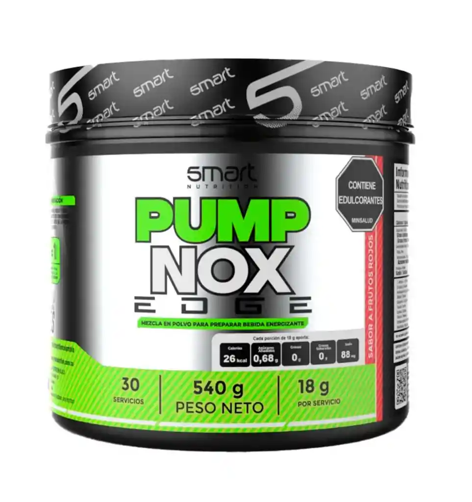 Pump Nox es tu aliado antes de entrenar, ideal para incrementar la energía, el enfoque y la congestión muscular. Producto de alta calidad, registrado por Invima. Presentación: Tarro por 200 g. Dosis recomendada: 6.5 g (1 scoop) antes del entrenamiento. Servicios por tarro: 30 servicios.