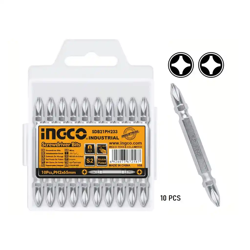 "Tienda Oficial de Repares S.A. - Todo en Ferretería PUNTA DESTORNILLADOR DOBLE C10 SDB21PH233 INGCO La punta destornillador doble C10 SDB21PH233 de INGCO es una herramienta versátil y duradera para tus tareas de atornillado. Con su diseño de doble punta, puedes utilizarla con diferentes tipos de tornillos, lo que la hace práctica y conveniente. Fabricada con materiales de alta calidad, esta punta destornillador ofrece resistencia y larga vida útil. Su forma ergonómica te brinda un agarre cómodo y seguro, facilitando el manejo y evitando deslizamientos. Con la punta destornillador doble C10 SDB21PH233 de INGCO, podrás realizar tus trabajos de forma eficiente y precisa, obteniendo resultados profesionales. Especificaciones Técnicas: * PH2, brocas dobles, MAGNÉTICO PLATEADO CON NÍQUEL 65 mm, 10 piezas / juego * Acero industrial S2 * Embalado en caja de plástico RECUERDA: * Somos una empresa comercializadora de productos en líneas de Ferretería Liviana, Tornillería, Repuestos de Automotor, Elementos para la Seguridad y Construcción, Herramientas Agrícolas, Manuales y Eléctricas. * La mayoría de todos nuestros productos tienen garantía. * Todos nuestros productos son nuevos, nunca encontrarás artículos usados o desgastados, todos están en perfectas condiciones y el envío lleva un proceso de empaque adecuado. * Todos nuestros productos están en constante proceso de prueba de calidad por parte de nuestros proveedores. * Contamos con una excelente reputación de distribuidores ferreteros en distintas partes del país. * Encuéntranos o Contáctanos en nuestras redes sociales y pagina web. "