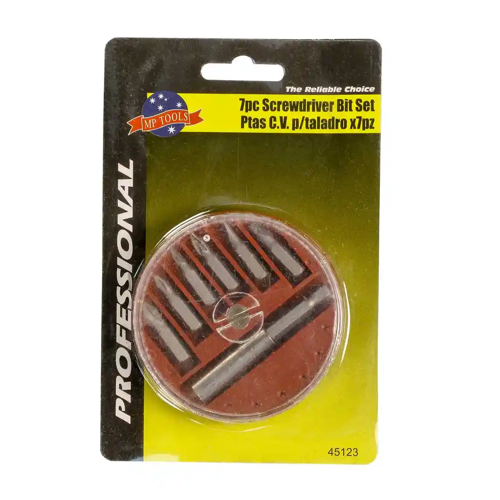 DESCRIPCIÓN Puntas de acero cromo vanadio. HRC 48 - 52. Acabado sanblasteado. USO Las puntas de acero son accesorios utilizados por taladros o destornilladores eléctricos para perforar materiales de diferente naturaleza. Generalmente trabajan sobre superficies blandas como madera, MDF, entre otros. Su principal aplicación es la carpintería. Material: Acero cromo vanadio. • Nivel de dureza: 48 - 52 (HRC). • Set: 7 (Piezas). • Tamaños: SL5 - SL7 - PH1 - PH2 - PZ1 - PZ2. • Acabado: Sanblasteado. • Ref.: #45123. GARANTÍA Garantía de Fabricación de 1 año: ensamble y materiales, la garantía no aplica para un uso, aplicación y/o mantenimiento inadecuado.