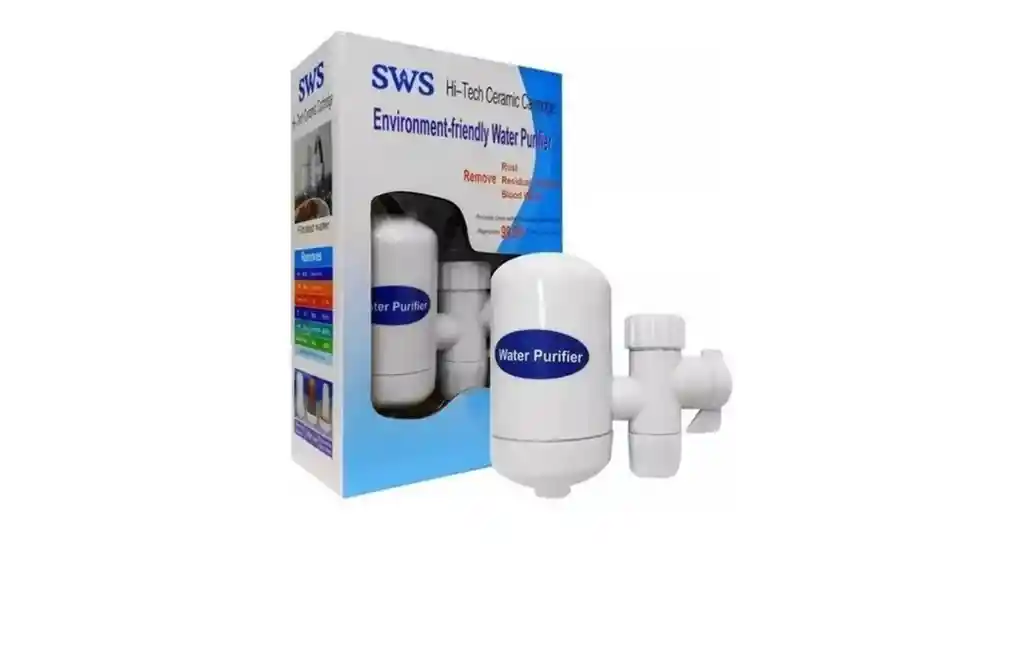 urificador de agua amable con el medio ambiente. Cartucho de cerámica de doble purificación con nano-tecnología KDF. Filtra hasta 10.000 litros de agua. Elimina el óxido de cloro residual de manera eficiente. Se puede utilizar por un tiempo prolongado antes de lavar el filtro sin contaminación secundaria. La instalación y cambio de filtro se hace con facilidad. La rotación del agua puede bloquearse fácilmente. Hecho con materiales que no afectan el medio ambiente. Seguro de usar. Adaptadores múltiples para todo tipo de grifos.