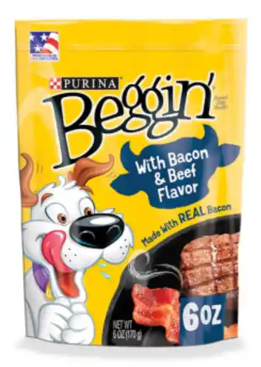 Snacks para perros de todas las razas y edades, populares por su sabor a tocino y textura suave, con carne real como ingrediente principal. La ración diaria recomendada es de aproximadamente una golosina por cada 10 libras de peso corporal, sin exceder 5 golosinas al día. Producto con fecha de vencimiento vigente.