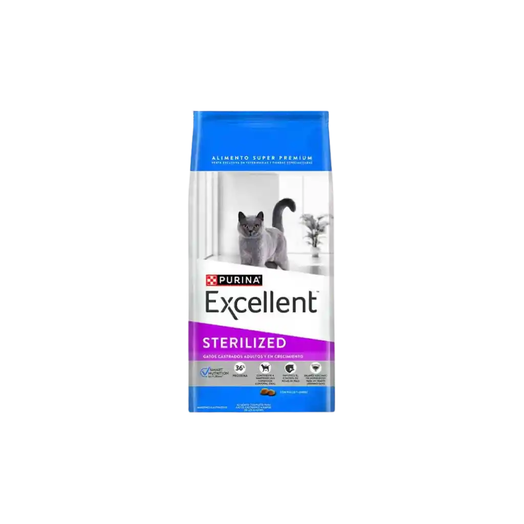 Alimento balanceado completo para gatos castrados de todas las razas a partir de los 6 meses de edad. PURINA® EXCELLENT™ presenta una línea de fórmulas super premium basadas en el sistema SMART NUTRITION BY PURINA®, un completo sistema de nutrición balanceada, desarrollado por el equipo de nutricionistas de PURINA® y aprobado por sus veterinarios para que tu gato disfrute de una vida larga y saludable. El sistema SMART NUTRITION BY PURINA® aporta múltiples beneficios, científicamente comprobados, que provienen de componentes de alta calidad y mantienen a tu gato con un excelente estado de salud. Cada formula es única y proporciona los nutrientes fundamentales para cumplir con todas las necesidades en las diferentes etapas de su vida. BENEFICIOS Contribuye a mantener una condición corporal ideal. Favorece el control de bolas de pelo. Balance adecuado de ingredientes para un tracto urinario sano.